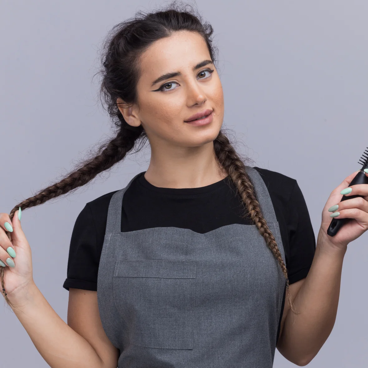 For achieving an impeccable updo, they begin with a set of basic tools: a fine-tooth comb for teasing, hairpins and bobby pins for securing, and a hairbrush for smoothing. They often include a tail comb for precise parting and a hair elastic for the base of the ponytail. For those attempting more intricate styles, a hair donut can add volume and shape, while hair clips assist in sectioning.